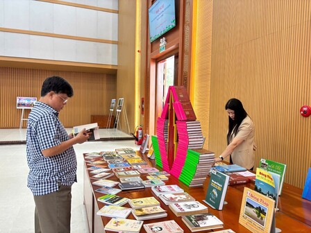 Ảnh 3: Đại biểu tham quan và đọc sách tại không gian trưng bày triển lãm