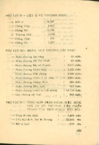 PHỤ LỰC IV— TỎNG HỢP JRẬN ĐÁNH, DIỆT ĐỊCH,