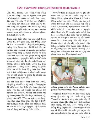 (CĐCĐ) Đồng Tháp đã nghiên cứu, pha nước rửa tay khô sát khuẩn, Thạc sĩ Võ
