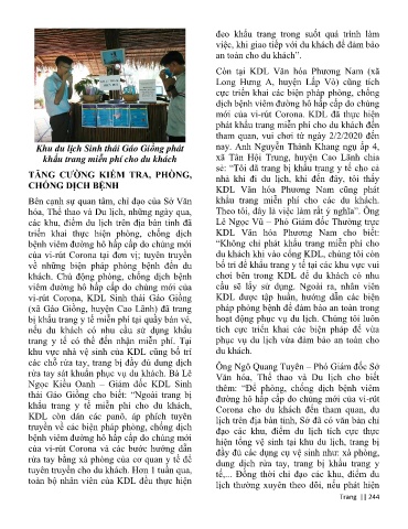 của vi-rút Corona tại đơn vị; tuyên truyền du khách khi vào cổng KDL, chúng tôi còn