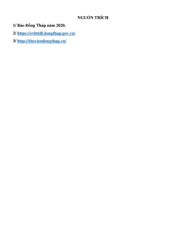 NGUỒN TRÍCH 1/ Báo Đồng Tháp năm 2020. 2/ https://svhttdl.dongthap.gov.vn/ 3/ http://thuviendongthap.vn/