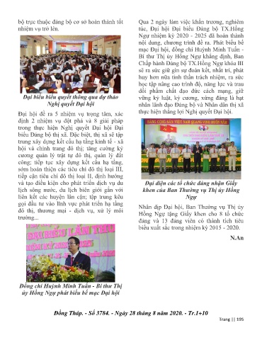 nhiệm vụ trở lên. túc, Đại hội Đại biểu Đảng bộ TX.Hồng