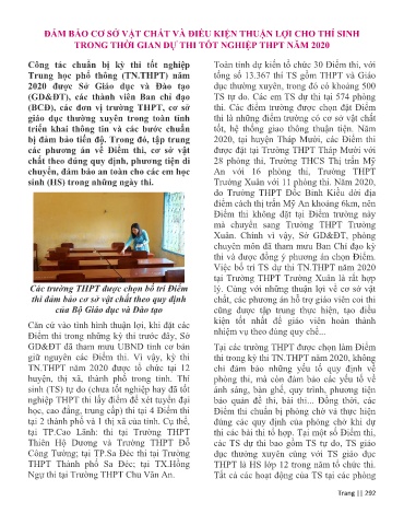 bị đảm bảo tiến độ. Trong đó, tập trung 2020, tại huyện Tháp Mười, các Điểm thi