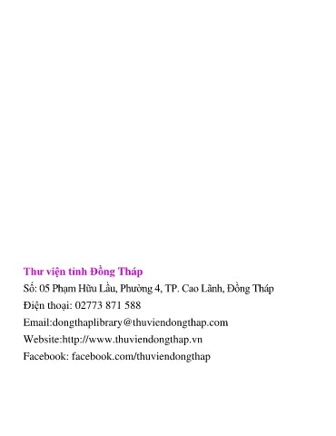 Thư viện tỉnh Đồng Tháp Số: 05 Phạm Hữu Lầu, Phường 4, TP. Cao Lãnh, Đồng Tháp Điện thoại: 02773 871 588 Email:dongthaplibrary@thuviendongthap.com Website:http://www.thuviendongthap.vn Facebook: facebook.com/thuviendongthap