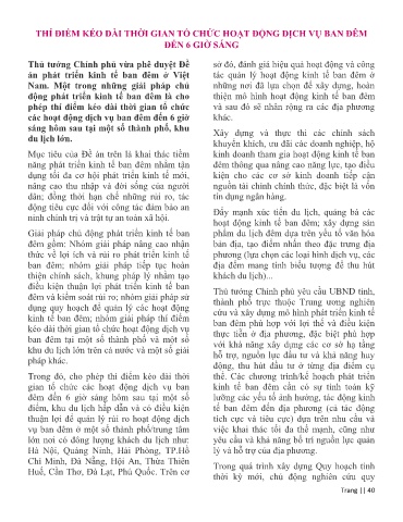 THÍ ĐIỂM KÉO DÀI THỜI GIAN TỔ CHỨC HOẠT ĐỘNG DỊCH VỤ BAN ĐÊM