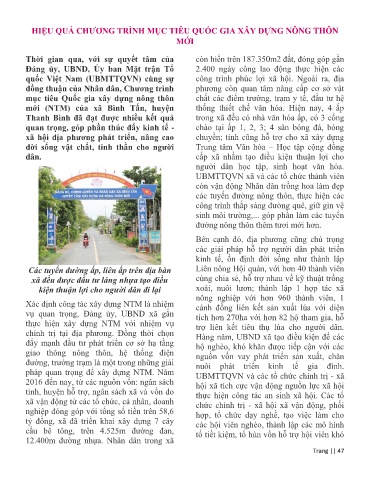 HIỆU QUẢ CHƯƠNG TRÌNH MỤC TIÊU QUỐC GIA XÂY DỰNG NÔNG THÔN